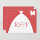 RSVP com este adorável convite cor-de-rosa. Apresentando um vestido branco de casamento com uma pomba no canto superior direito. Compre o seu hoje! Vestido de casamento e borboleta: https://www.etsy.com/shop/WinchesterLambourne