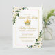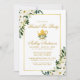 Placa de Convite de festas para Chá de panela Dourado Floral Verde e Branco