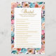 Este jogo "Bridal Do You Know" apresenta uma lista de coisas que só aqueles que realmente conhecem a noiva e o noivo podem responder. Veja quantos você sabe, e dê a si mesmo um ponto para cada palpite correto. Este jogo combina com outros jogos do mesmo design e pode ser comprado juntos para uma grande diversão de chá de panela! Procure outros designs florais para este e outros jogos de chá de panela!