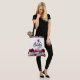 This shoulder tote bag is shown with a mix of red and white peonies print design.