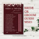 Bride in bloom bridal Shower. Bride or Groom guess Who?. Add fun and laughter to your bridal shower with this elegant Bride or Groom Guess Who game featuring a romantic Bride in Bloom floral design in rich burgundy tones. Guests guess whether each question relates to the bride or groom and circle their answers. Perfect for spring, garden, floral, rustic, and modern bridal showers, this printable-style game brings interactive entertainment to any celebration. Ideal for engagement parties, bachelorette events, and bridal shower game bundles.