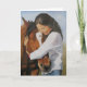 Esta carta de boas-vindas reproduz a minha pintura original a óleo de Bridget e do seu cavalo de salvamento.
