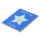 Este notável bloco apresenta uma imagem gráfica de uma estrela azul de cinco pontas com olhos enormes e um grande sorriso. Há texto personalizável que permite personalizar este design com o nome do destinatário e uma mensagem especial de sua escolha.