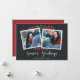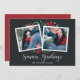 Cartões com fotos elegantes e festivos fotografam duas de suas fotos quadradas favoritas com uma sutil borda decodificada e folhagem vermelha e verde de feriado nos cantos. "Saudações da Época" aparece na parte inferior em um roteiro de caligrafia branca, com seus nomes e o ano abaixo.