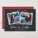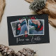 Cartões com fotos elegantes e festivos fotografam duas de suas fotos quadradas favoritas com uma sutil borda decodificada e folhagem vermelha e verde de feriado nos cantos. "Peace On Earth" aparece no fundo em uma escrita de caligrafia branca, com seus nomes e o ano abaixo.