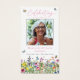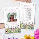 Esta é uma elegante e caprichosa carta de oração memorial. A design apresenta uma bela fonte de caligrafia e um belo campo de flores silvestres, de cor brilhante, com borboletas, espécimes e abelhinhas. Este cartão de oração funerária pode ser facilmente personalizado com sua própria foto para criar um tributo especial para seu ente querido usando o modelo fornecido. Entre em contato com o designer para obter informações sobre este design ou sobre produtos correspondentes.