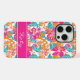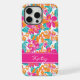 Designed with a vibrant tropical-style flower pattern in pink, orange, and teal, this case features a custom name band for a playful, stylish touch.