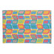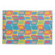 Este travesseiro tem uma design moderna do século médio de cores brilhantes que faz retângulos arredondados com outros retângulos dentro formados por uma coleção de linhas.