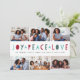 Compartilhe seis fotos favoritas com o nosso cartão festivo e brilhante. "Joy, peace, love" aparece no centro em letras vibrantemente coloridas, com seus nomes e o ano abaixo.