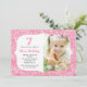 Este convite moderno e bonito é ideal comemorar a festa de aniversário de uma menina. Caracteriza o número "7", um fundo cor-de-rosa do brilho e um quadro ornamentado que inclua a imagem da menina do aniversário. Ideal feminino do design para um evento chique. Adicione seus próprios imagem e fraseio.