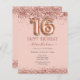 Rapariga reluzente, fundo cor-de-rosa milenar, com tipografia de nome de script de rico. Texto do balão rosa dourado 16. Rosas rosa e borboletas na borda superior. Excelente para 16 celebrações.