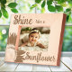 O Brilho giro como um Molho de Pau Enchido de Girassol faz uma ideia de presente de excelente para um amante, jardineiro ou florista. Ele apresenta uma fotografia floral gravada a laser de um flor de girassol enfeitando a esquina.