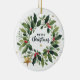 Uma design de férias encantadora e festiva, com um elegante fundo inspirado na natureza, de folhagem de corante d'água, bagas ocas e folhas decorativas. O texto da peça central lê humoramente "Brilho Brilhante Como Rudolph" misturando palavras caprichantes com uma estética sazonal refinada. O pano de fundo escuro destaca os verdes coloridos, vermelhos e dourados, criando um aspecto confortável e sofisticado perfeito para decorações ou presentes de Natal.