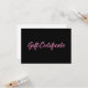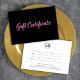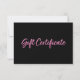 Este certificado de presente contém as palavras "Certificado de Presente" em cintilação rosa falsa contra fundo preto na frente. Personalize-o substituindo o texto do marcador de posição e a imagem do marcador de posição pelo seu próprio logotipo. Para obter mais opções, como alterar a fonte, seu tamanho e espaçamento entre letras, clique no botão "Personalizar". *Observe que a Marca d'água do Zazzle que aparece na visualização de zoom NÃO aparecerá no produto impresso final. © Rosewood e Citrus