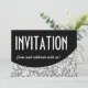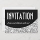 Convite com um design moderno com estrelas espalhadas sobre uma forma curva estilizada com "visual de lantejoulas" em tons de cinza prateado sobre um fundo preto com 'Convite' 'venha celebrar conosco!' escrito em branco. Pode ser usado como fundo para o seu próprio texto, imagens e ideias. O texto pode ser facilmente alterado usando o modelo fornecido ou clicando no botão 'Personalizar' para fazer outras alterações. Por favor, note que esta é uma imagem de arte digital impressa, não brilha nem contém brilho ou lantejoulas reais.