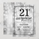 Convite do aniversário de 21 anos da surpresa com luzes de prata da corda com fundo de prata do brilho. Aniversário de prata. Aniversário adulto. Os homens ou as mulheres Bday convidam. 13o 15o 16o 18o 20o 2ø 30o 40th 50th 60th 90 100th do 80 do 70, alguma idade. Para uma personalização mais adicional, clique por favor "personalizam-no" botão e usam-nos nossa ferramenta de design para alterar este modelo.