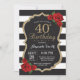 Brilho Dourado do convite do aniversário de 40 anos da rosa vermelha. A festa de aniversário preta e Dourado convida. Brilho Dourado. Listras preto e branco. Quadro. Digitas Printable. Para uma personalização mais adicional, clique por favor "personalizam-no" botão e usam-nos nossa ferramenta de design para alterar este modelo.