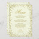 Este menu moderno e sofisticado do comensal do brilho dos confetes do ouro pode ser personalizado. Você pode mudar a pia batismal e as cores da maioria do texto assim como da cor do fundo. Projetado por Amelia Carrie e vendido exclusivamente através da nota de GlitterInvitations.com: Este é uma reprodução ou uns trabalhos de arte gráficos do impressão e não contem nenhum brilho desarrumado.