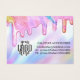 Este cartão de exibição de logotipo de negócios de brincos pendurados feminino e glamoroso é a maneira perfeita de estilizar sua embalagem e adicionar seu próprio charme e personalidade. Ele apresenta gotas de glitter grossas impressas em falso com cores de arco-íris de unicórnio cintilante em cima de um fundo iridescente holográfico. A tipografia é um script cursivo elegante com uma fonte serifada moderna para combinar. A paleta de cores inclui rosa, pêssego, azul, roxo, amarelo e coral. É chique, bonito, único e luxuoso; a maneira perfeita de anunciar seu negócio e estilizar seu material de marketing e propaganda para seus clientes. (os furos dos brincos são apenas marcadores impressos, a perfuração deve ser concluída pelo cliente)