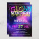 Néon de tendência brilha no convite de festas colorido azul-escuro, névoo vibrante e vívido, para adolescentes.
