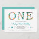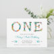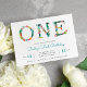 O convite floral para o primeiro aniversário da sua menina é "UM", escrito em flores chicas, com os detalhes da sua festa embaixo de uma letra escura e esbranquiçada.