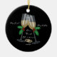 Nossos primeiros enfeites de natal caracterizam um par à moda de vidros do champanhe com um grupo de grupo das alianças de casamento em um fundo preto! Personalize com sua informação e data e você são todos ajustam-se para ir! Presente datado maravilhoso da lembrança para seu primeiro Natal e uma grande adição a você coleção dos enfeites de natal.