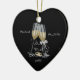 Nossos primeiros enfeites de natal caracterizam um par à moda de vidros do champanhe com um grupo de grupo das alianças de casamento em um fundo preto! Personalize com sua informação e data e você são todos ajustam-se para ir! Presente datado maravilhoso da lembrança para seu primeiro Natal e uma grande adição a você coleção dos enfeites de natal.