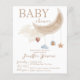 Um convite para o chá de fraldas da lua russa. Marrom claro neutro adequado para ambos os gêneros.