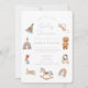 Adorável convite ao chá de fraldas concebido para um bebê, com ilustrações pastel macio de brinquedos de madeira, ursinho de pelúcia, cavalo de balanço, arco-íris e aviões antigos. Perfeito para uma celebração teatral com um sentimento quente e vintage. Este convite encantador é ideal para os pais a serem que amam tons naturais e designs de brinquedos eternos. Uma escolha doce e na moda para dar o tom de um chá de fraldas memorável para um garoto.