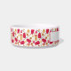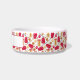 Criado para cães! Este padrão apresenta brinquedos para cães vermelhos recheados com manteiga de amendoim, itens relacionados à manteiga de amendoim e pegadas em um fundo branco. Personalize esta tigela usando o nome do seu animal de estimação!