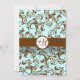 Damasco castanho sobre o Convite para Casamento vintage Elegante de Monograma Azul-Azul Claro
