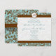Damasco castanho no Convite para Casamento vintage Elegante Monograma Azul de Piscina Profunda