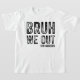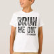 Esta imagem apresenta uma t-shirt branca concebida para crianças. O texto "BRUH WE OUT" é impresso em letras grandes e angustiadas a preto no topo. Abaixo disso, o texto menor "-5 GRADERS" também está preto.