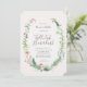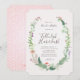 Convite inspirado na natureza com um quadro composto de samambaias, flores silvestres, bagas e florestas em verde. O belamente quadro pintado à mão rodeia o texto anunciando seu Chá Brunch e Bubbles. Um design simples, delicadamente apresentado em lindas cores naturais, verde, rosa, vermelho, roxo, azul e castanho. Pontos brancos sobre um fundo cor-de-rosa ao contrário.