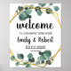 Você pode receber seus convidados para o seu casamento com nossa poster de Folhagem Abundante. Esta poster é verde-botânica de cor aquosa e folhas de eucalipto, com "bem-vindos a nossa felicidade para sempre". Seus nomes e data de casamento em um tipo de caligrafia.