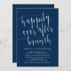 Este é um convite de casamento íntimo editável em azul-marinho moderno (Brunch do Felizes para Sempre). Um cartão perfeito para convidar sua família e convidados para o anúncio do seu casamento íntimo e celebração da festa de recepção. Adicione os detalhes da sua celebração na fonte / letra correspondente.
