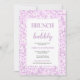 Clássica elegante brunch de chá de panela e convite à borbulha com padrão de mosaico roxo e página anterior de aquarela. © Mini Moi Impressões