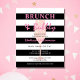 Black and White Stripe com Brunch Rosa e Vidro de Champanhe Rosa Cintilante. Chá de panela