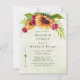 Design apresenta um elemento floral impresso em tons de amarelo, rosa e verde sobre folhas verdes e girassóis, sobre um fundo verde claro de aquarela. Excelente para as comemorações do casamento!