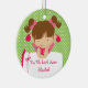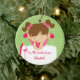 Os enfeites de natal triguenhos doces personalizados da irmã mais nova da menina ajustaram-se em um fundo das bolinhas do verde limão. Um presente do Natal da maravilha sure a ser estimado por muitos próximos anos.