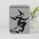 Este convite para as bruxas, personalizável, tem uma imagem de uma bruxa negra engraçada voando através do céu em sua vassoura mágica, com seu chapéu pontiagudo na cabeça e suas longas bruxas pretas se vestindo atrás dela, ela parece excelente neste convite para uma festa de Halloween de qualidade, tenho certeza de que todos ficarão felizes em receber esta conversa de bruxa voadora assustadora. Este convite original pode ser personalizado com o seu próprio texto.