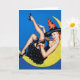 Garota do Pin-Up vestida como uma Bruxa sentada no Cartão de Saudação do Dia das Luas, dentro de vazio para que você possa personalizar.