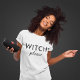 Mantenha-se chique e assustador esta temporada com a nossa camisa de Halloween "WITCH, por favor". Apresentando um texto ousado e moderno com um sotaque de na moda, este design de tendência com feitiçaria é perfeito para festas, truques ou tratamentos ou quedas ocasionais. Uma tenda de Halloween para qualquer um com asas, humor e vibes de bruxa. Disponível em várias cores e estilos.