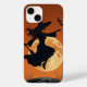 Design do Dia das Bruxas Clássico com uma bruxa voando sobre sua vassoura através de uma lua laranja brilhante. O estilo ousado da silhueta retrô faz com que este acessório seja festivo e eterno. Um imperativo para as vibrações do Halloween.