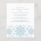 Flocos de neve de cor azul muito elegantes criam uma bonito borda ao longo do final deste convite de aniversário para adultos. A design moderna e minimalista tem uma sensação aberta e arejada. A estética contemporânea apelará a pessoas de todas as idades.