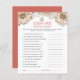Um alternativo do preço do orçamento. Um jogo divertido para seus chás de fraldas convidados Adivinhem quem Mamãe ou Pai com um belo abelhão e design floral. O cabeçalho principal está em um estilo artístico fixo em coral e o resto do texto que você pode personalizar facilmente para seus próprios detalhes.