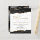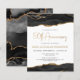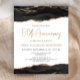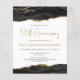 This elegant 50th anniversary party invitation features a top and bottom border of black watercolor agate geode with faux gold glitter highlights. The words "50th Anniversary" appear in sparkly gold faux foil in decorative modern handwriting font. Customize it with the names of the guests of honor in gold-colored text and the party details in charcoal gray on a white background. A matching black and gold agate image appears on the reverse side.