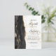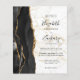 The left-hand edge of this elegant modern wedding invitation features a black watercolor agate border trimmed with faux gold glitter. The customizable text combines handwriting, copperplate and italic fonts in black on a gold and white marble texture background. Add additional details on the back, along with a QR code to help your guests visit your wedding website.