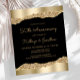 This trendy 50th wedding anniversary party invitation features sparkly gold faux foil and glitter top and bottom borders on a black background. The words "50th Anniversary" and the first names of the couple appear in casual gold-colored handwriting script, with the rest of the customizable text in sans serif font. The same gold foil and glitter border design appears on the reverse side.