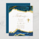 Batismo, Christening, 1º convite de comunião santa com uma cruz de ouro sagrado. Campos modelo de texto para ambos os lados para adicionar todos os detalhes do evento especial para filho ou filha.